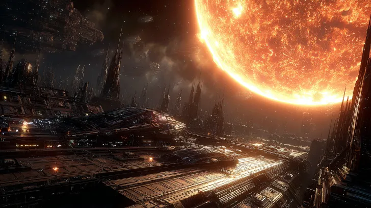 Midjourney Bot 更新时间:2025-12-13 00:48蒸汽朋克场景,背景是宇宙空间,巨大太阳大小几乎占据整个背景的一半,巨大太阳挂在钢铁大地的地平线上,大量外形相似的巨型反射镜和透镜的建筑旁边有大量与建筑物一样高大的巨型机器人,机器人行走在钢铁大地上, Octane渲染展现逼真细节和金属质感,柔和光线与粗糙笨重机械营造强烈对比,受H.R. Giger启发的工业美学 高分辨率,超精细,超细节,OC渲染器,最佳质量,超高清, --ar 16:9 --v 7 --sref https://images.gogpt.vip/aigf/origin/20251210/1765295246454432_3.png