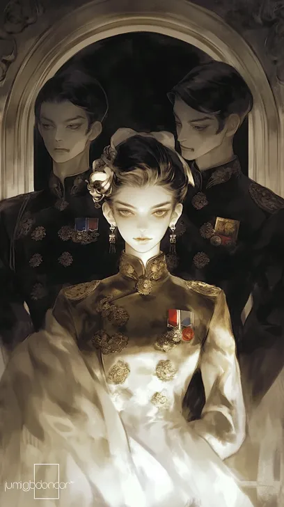Midjourney Bot 更新时间:2025-12-13 00:12https://images.gogpt.vip/aigf/m_origin/20251213/1978374/gavinm58zva0sa52.jpeg 老宅昏暗的走廊,民国,年龄18岁,镇长之子立于一道圆形月亮门前,脸庞受柔光照射,显得温良。透过门洞,他在远处墙壁上被拉长的影子却化为持利器的凶徒形象。他垂眸看着手中染血的密信。分割式布光,身后的暖光与门外的冷蓝月光形成强烈视觉隐喻,神秘悬疑,建筑摄影风格,深景深 --ar 9:16 --stylize 100 --iw 1.5 --niji 6 --sref https://images.gogpt.vip/aigf/m_origin/20251213/1978374/gavinm58zva0sa52.jpeg --cref https://images.gogpt.vip/aigf/m_origin/20251213/1978374/gavinm58zva0sa52.jpeg --cw 79 --sw 310