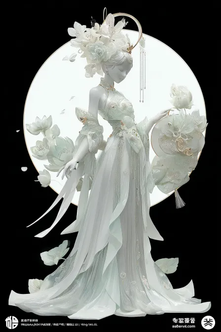 Midjourney Bot 更新时间:2025-12-13 00:13商业广告渲染,产品设计,立体结构设计,人物造型,玻璃制品,金镶玉工艺,完整全身展示,赛璐璐,二次元,一个玻璃烧纸而成的小女孩儿,精致的五官,多材质混合,中式玉石雕刻,皇室工艺,玻璃肌肤,闭着眼睛,红绿配色,中式金属护甲,白色的旗袍,一个巨大的金色的金属壳包裹着女孩儿,服装设计 --ar 2:3 --v 7 --stylize 192 --sref https://images.gogpt.vip/aigf/m_origin/20251211/140639/zlp79p6hnuaqql7x.jpg https://images.gogpt.vip/aigf/m_origin/20251211/140639/9zimjb7qn7gtd3lb.jpg --sw 284 --sv 3