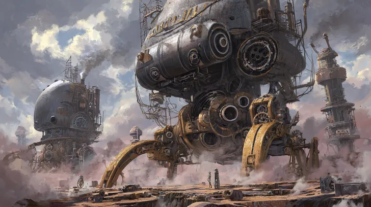 Midjourney Bot 更新时间:2025-12-13 00:16宇宙钢铁荒原上,巨大太阳占据半边天幕,阵列式巨型反射塔与透镜结构旁矗立着蒸汽朋克巨神兵机甲,青铜齿轮关节喷发着白色蒸汽,锈蚀金属外壳覆盖液压驱动的多关节肢体,黄铜管道缠绕机械躯干。赛博朋克风格工业废墟中,铬钢镜面折射出恒星耀斑,铜绿锈迹与抛光铆钉形成质感碰撞,H.R.Giger式生物机械结构融合维多利亚时代精密仪表。Octane渲染呈现32K金属拉丝纹理,强烈背光勾勒机甲剪影,滚滚浓烟在零重力环境中螺旋升腾 --ar 16:9 --v 7