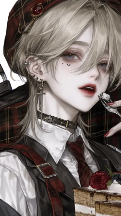 Midjourney Bot 更新时间:2025-12-13 00:24厚涂,暖色调,柔和光,白皙皮肤,细致渲染,俊美,青春少年,宽肩窄腰,桃花眼,眼尾泪痣,鼻梁高,薄唇,手掌修长指节分明,一手端着蛋糕一手拿着叉子,脸颊沾着一点奶油,白色短发,发丝柔顺,蓝色眼瞳,眼睫根根分明,虎牙,可爱穿搭,少年感,现代都市风格 --ar 9:16 --style raw --stylize 806 --niji 6 --profile 15uqdri