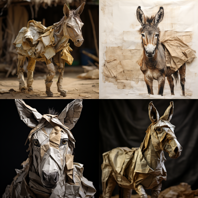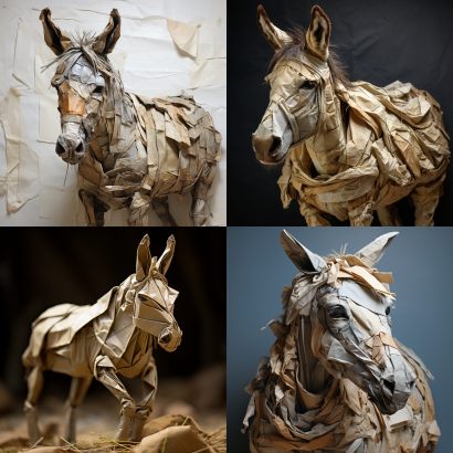 Midjourney Bot 更新时间:2023-09-04 14:00Cartoon style disheartened paper donkey --ar 1:1 --style raw --v 5.2 --s 250