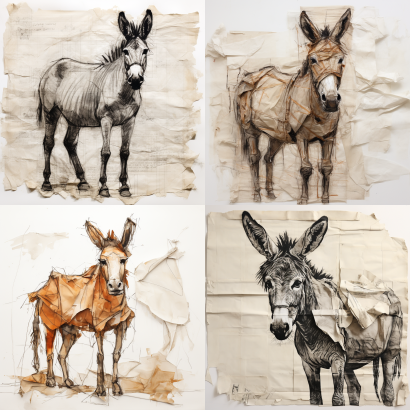 Midjourney Bot 更新时间:2023-09-04 13:59A 2D donkey on paper, in a weak and disheartened state --ar 1:1 --style raw --v 5.2