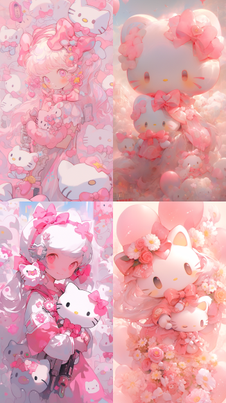 Midjourney Bot 更新时间:2023-09-04 13:58the picture is done in pink and white,Hello Kitty comes from Sanrio ,Hello Kitty girl,transparent colors,blink-and-you-miss-it detail,kawaii aesthetic, high-keyed palette,precisionist art ,Dream colors,low saturation ,Pastel,oil painting --ar 9:16 --niji 5
