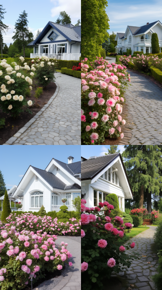 Midjourney Bot 更新时间:2023-09-04 14:04A corner of a luxurious villa in the Nordic style: there is a cement road with roses planted on the roadside --ar 9:16 --style raw --v 5.2