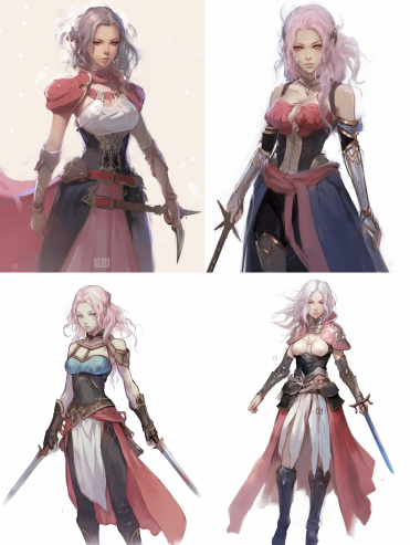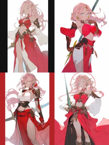 Midjourney Bot 更新时间:2023-09-04 13:46This elf woman is wearing an amazing fashion outfit. Her slightly curly hair falls lightly on her shoulders, softly complementing the light pink ponytail. She exudes a unique sense of wisdom and mystery through her blue eyes.,In her hand, she tightly held a Renaissance style stabbing sword, with a slender body and a silver shining blade. This stabbing sword seems to be a symbol of her endless courage and unwavering determination, highlighting the powerful power within her.,Her attire is exquisite and eye-catching. She was wearing a red top with a chest and waist, showcasing her slender and slender waist lines. The design of the top is simple and elegant, perfectly complementing her curvaceous beauty. The white semi transparent cloak gently fluttered, adding a hint of mystery and immortality to her.,There is a black belt tied around the waist, adorned with various gorgeous patterns and gemstones, emitting a jewel like luster. This belt is not only an ornament, but also a symbol of her identity and status, showcasing her nobility and elegance.,Finally, she wore a red fishtail skirt that extended to her slender legs, outlining an elegant curve. The skirt swayed gently, as if emanating magic from every step she took. In the entire image, the passion and freedom of the red fishtail dress contrasts sharply with her calm and firm gaze, showcasing her complexity and versatility. Whether standing or walking, she exudes her solemn and charming temperament. --ar 1:1 --style raw --v 5.2