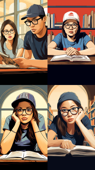 Midjourney Bot 更新时间:2023-09-04 13:51Illustration: A 30 year old woman, Asian, wearing a baseball cap and glasses, with a serious expression, reading a book on the table next to her --no characters --ar 9:16 --style raw --v 5.2