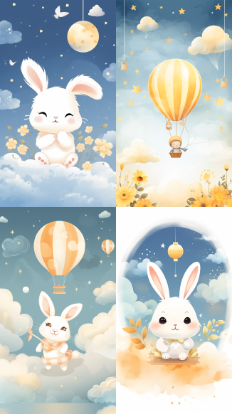 Midjourney Bot 更新时间:2023-09-04 13:42Cute rabbit, moon, Mid-Autumn Festival, ancient China, hand-painted style, airplane --ar 9:16 --style raw --v 5.2
