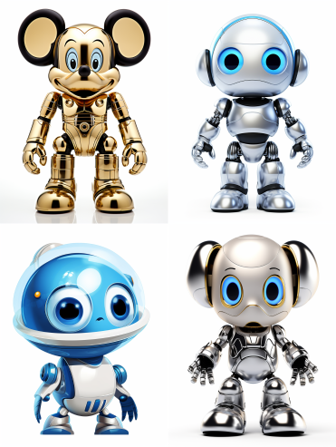 Midjourney Bot 更新时间:2023-09-04 13:29vector image::2, wrapped in a shiny metal shell, smooth texture is effortless. Its body looks short and cute like a child, but it possesses the wisdom and skills of most adults. It has a round head, embedded with a pair of exquisitely crafted large eyes, which exude warmth and curiosity. The robot's face is painted with a sweet smile, making people want to share happiness with it. Its arms and legs are designed to be very flexible, allowing it to move and twist freely, making it easy to handle various tasks in any environment. This robot exudes a sense of youth, friendliness, and endless possibilities, making it beloved and trustworthy.,studio light,Best quality,disney,full body character design,excited,clean background ,studio light,Best quality,disney,full body character design,excited,clean background --weird 17 --ar 3:4 --style cute --niji 5