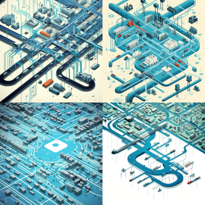Midjourney Bot 更新时间:2023-09-04 13:27Urban pipeline network diagram, bird's-eye style, sci-fi future style, mainly blue, white, and black --ar 1:1 --style raw --v 5.2