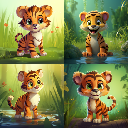 Midjourney Bot 更新时间:2023-09-04 13:36A cartoon cute tiger stands on a green grass, with straight and powerful limbs. The orange and black striped hair on its body emits a bright and fiery glow, as if shimmering with soft and wonderful light in the sun. Its eyes sparkled with intelligence and curiosity, and it looked very friendly. The tiger tightly held onto a fish, its tail swaying and water droplets falling as if it were still alive. The details of this fish are exquisite and realistic, as if one can feel its cold scales and wet touch. The tiger carries a transparent bowl on its back, filled with clear water. The water in the bowl moves, forming a small vortex and the faint ripples spread out. The entire scene exudes a calm and warm atmosphere, as if the tiger is enjoying the delicious food in its hands, while also showcasing its appreciation for nature and life. --ar 1:1 --style raw --v 5.2
