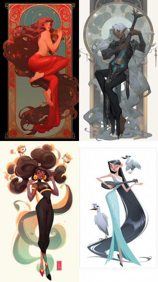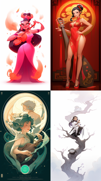 Midjourney Bot 更新时间:2023-09-04 13:28china painting of a woman playing a chinese pipa with strings, in the style of art nouveau-inspired illustrations,whimsical character design,angura kei, full body, art of burma, charming character illustrations,multilayered,Victor Pasmore --c 16 --ar 9:16 --style expressive --niji 5