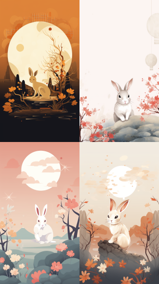 Midjourney Bot 更新时间:2023-09-04 13:38Rabbit, moon, Mid-Autumn Festival, ancient China, hand-painted style --ar 9:16 --style raw --v 5.2