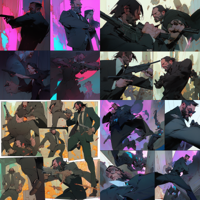 Midjourney Bot 更新时间:2023-09-04 13:15A comic book page featuring John Wick's fierce battle with villains, featuring Pixiv, underground comics, cyberpunk, and conceptual art illustrations - Niji 5 --s 265 --ar 1:1 --style expressive --niji 5