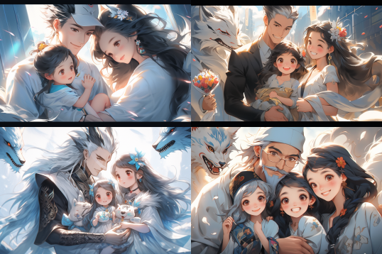 Midjourney Bot 更新时间:2023-09-04 13:22Family group photo, father, mother, elder son and younger daughter, in the style of cute and dreamy, gongbi, 8k resolution, dark white and light azure, ferrania p30, cartoon realism, 32k uhd --weird 10 --s 750 --c 10 --ar 3:2 --niji 5