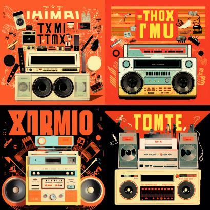 Midjourney Bot 更新时间:2023-09-04 13:05Retro sound, trendy illustration style, retro trendy objects, posters, microfilms, perspective --iw 1.5 --ar 1:1 --style raw --v 5.2