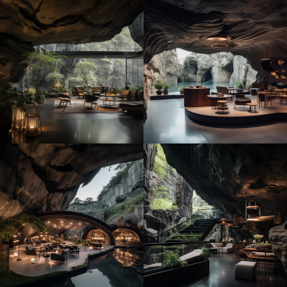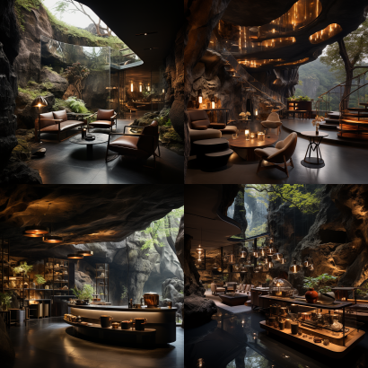 Midjourney Bot 更新时间:2023-09-04 13:20A modern style immersive tea house in a karst cave --ar 1:1 --v 5.2 --style raw