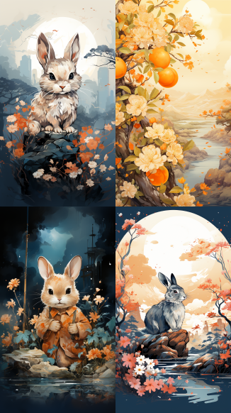 Midjourney Bot 更新时间:2023-09-04 13:19Rabbit, moon, Mid-Autumn Festival, ancient China, hand-painted style --ar 9:16 --style raw --v 5.2 --s 750