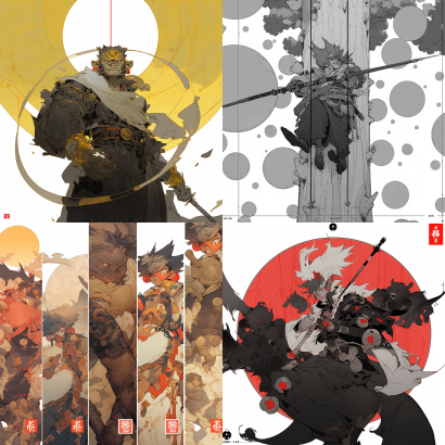 Midjourney Bot 更新时间:2023-09-04 13:20Sun Wukong, manga screen tones, screen tone patterns, dot patterns, larger and more widely-spaced dots, High Quality ar 3:2-niji 5 --s 265 --ar 1:1 --style expressive --niji 5