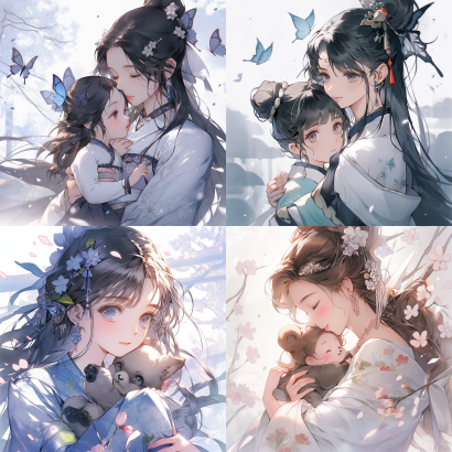Midjourney Bot 更新时间:2023-09-04 13:13The picture remains the same, add a mother, Qixi picture --ar 1:1 --niji 5