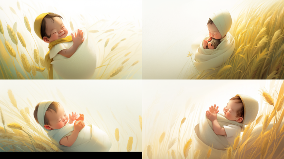 Midjourney Bot 更新时间:2023-09-04 13:17The baby is in the wheat field, wearing a bright yellow jumpsuit. The sun shone on his face, illuminating his innocent and brilliant smile. The wheat waves swayed with the breeze, forming a golden ocean. The baby tightly held a green straw in his little hand as he looked down at his discovery, his eyes flashing with curiosity and surprise. In the distance is a vast sky, with a blue sky dotted with several pure white clouds. Behind the baby is a tall pine tree that sways gently in the breeze, adding a sense of tranquility and comfort to the entire scene. This scene seems to capture the moment of the baby's joyful exploration, showcasing a pure and natural beauty. --ar 16:9 --style scenic --niji 5
