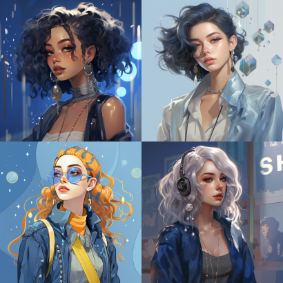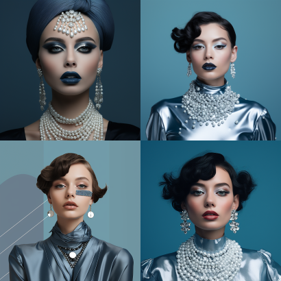 Midjourney Bot 更新时间:2023-09-04 12:26Fashionable Basha's style, minimalist and indifferent, is a woman dressed in postmodern style, with a cool and cool appearance in blue and gray tones, low saturation. The woman's face is adorned with exquisite makeup and sequin pearl decorations, and earrings also echo each other. In the classrooms of American universities, there is a learning atmosphere with backpacks, virtual backgrounds, and clean backgrounds, mainly highlighting desktop closeups. There are two books next to them for decoration, and they are captured by photography professionals. This function focuses on shallow depth of field in the middle area and uses a Hassel camera for shooting --ar 1:1 --style raw --v 5.2