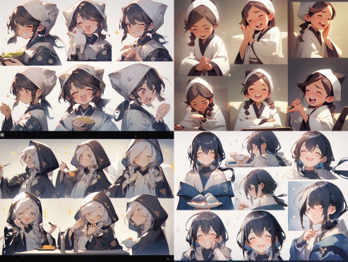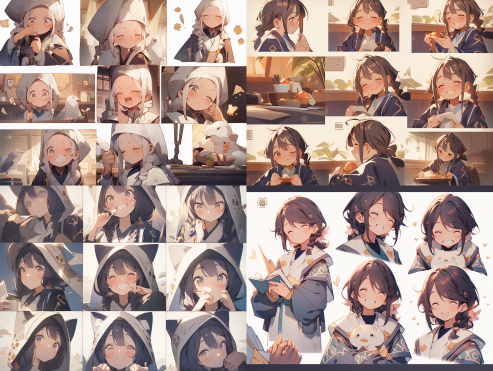 Midjourney Bot 更新时间:2023-09-04 12:24A little girl in a white robe reads, traditional clothes, animated character design, Chinese painting, light gray, cute, modest charm, emoticon package, 9 emoticons, emoticon Symbol table, multiple postures and expressions, anthropomorphic style, black strokes, different emotions, multiple poss and expressions, 8k --s 470 --ar 4:3 --style cute --niji 5