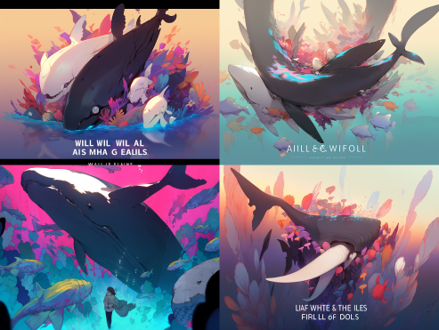 Midjourney Bot 更新时间:2023-09-04 11:56Whales fall and all things grow, cover: Death is a mirror of life --ar 4:3 --style expressive --niji 5
