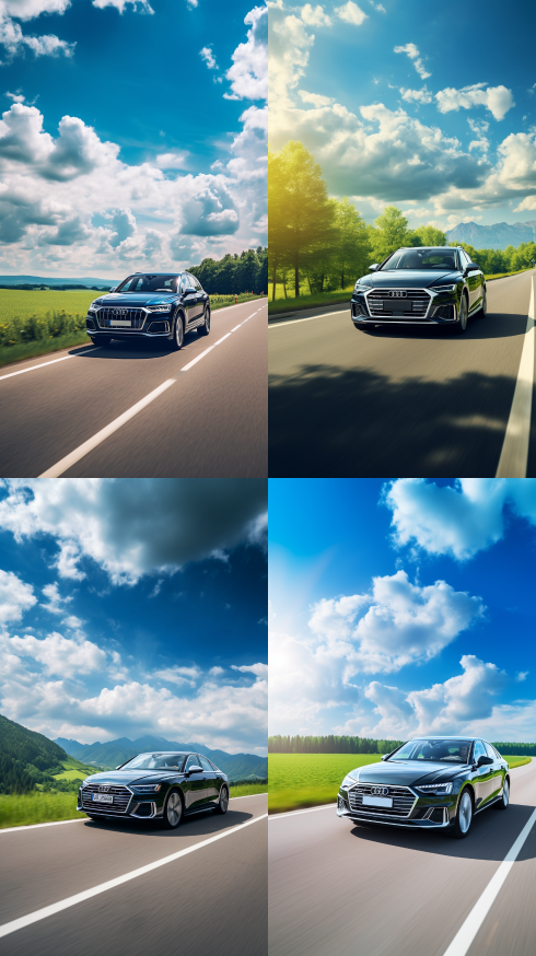 Midjourney Bot 更新时间:2023-09-01 12:54Masterpiece, high quality, 16K, 2023 black Audio A6L, driving on open roads with blue sky and white clouds, with two rows of trees on both sides of the road --ar 9:16 --style raw --v 5.2