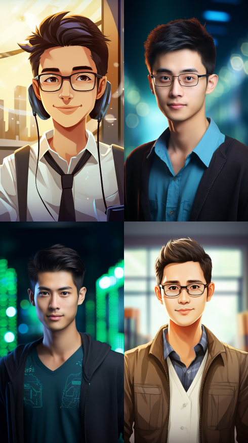Midjourney Bot 更新时间:2023-09-01 12:51Programmer, bust, young, handsome, successful, [Asian], panoramic, soft focus, Japanese anime style --ar 9:16 --style raw --v 5.2 --s 250