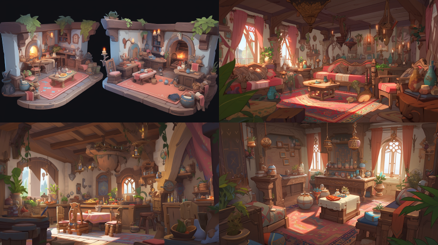 Midjourney Bot 更新时间:2023-09-01 12:04Medieval European Living Room --ar 16:9 --style expressive --niji 5
