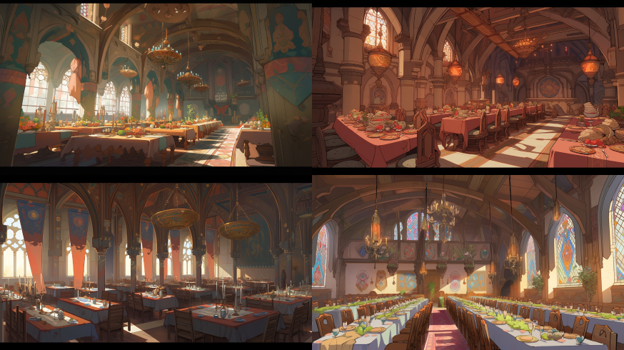 Midjourney Bot 更新时间:2023-09-01 11:58Medieval European Banquet Hall --ar 16:9 --style expressive --niji 5