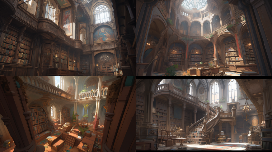 Midjourney Bot 更新时间:2023-09-01 12:00Medieval European Library --ar 16:9 --style expressive --niji 5