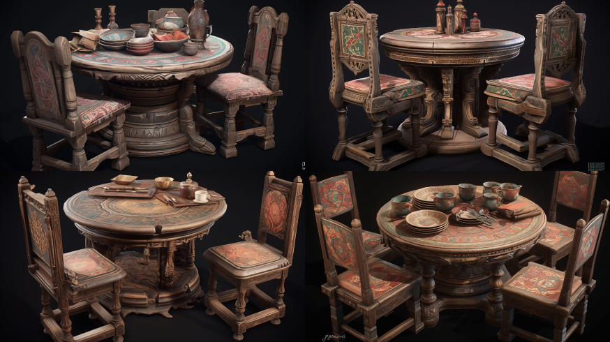 Midjourney Bot 更新时间:2023-09-01 11:59Middle Ages European Round Table with chairs --ar 16:9 --style expressive --niji 5