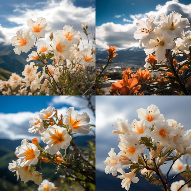 Midjourney Bot 更新时间:2023-09-01 12:13White flowers in the clouds, in the style of max drive, quito school, tokina opera 50mm f/1.4 ff, award-winning, luminant landscapes, é mile Bernard, light break and orange --ar 1:1 --style raw --v 5.2