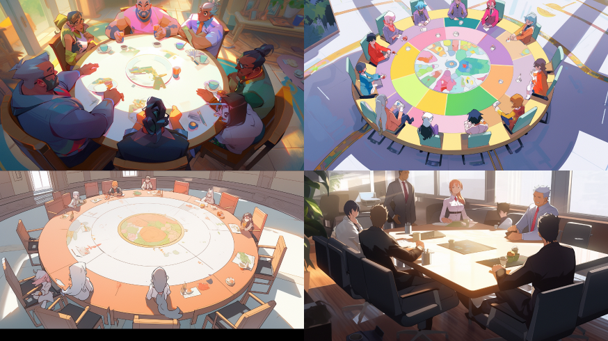 Midjourney Bot 更新时间:2023-09-01 12:13Round table meetings --ar 16:9 --style expressive --niji 5