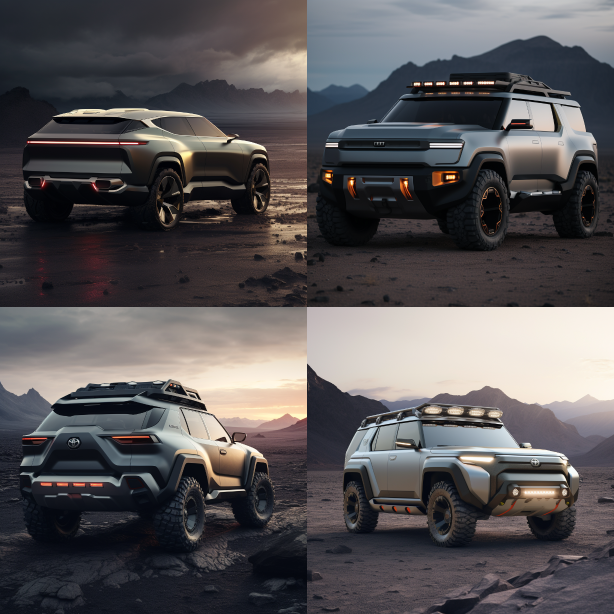 Midjourney Bot 更新时间:2023-09-01 11:08A future concept SUV, with a medium to large size, featuring a rugged and sleek design, and a horizontal light bar. --ar 1:1 --v 5.2 --style raw