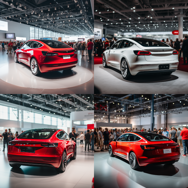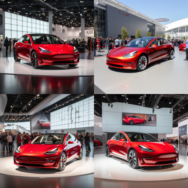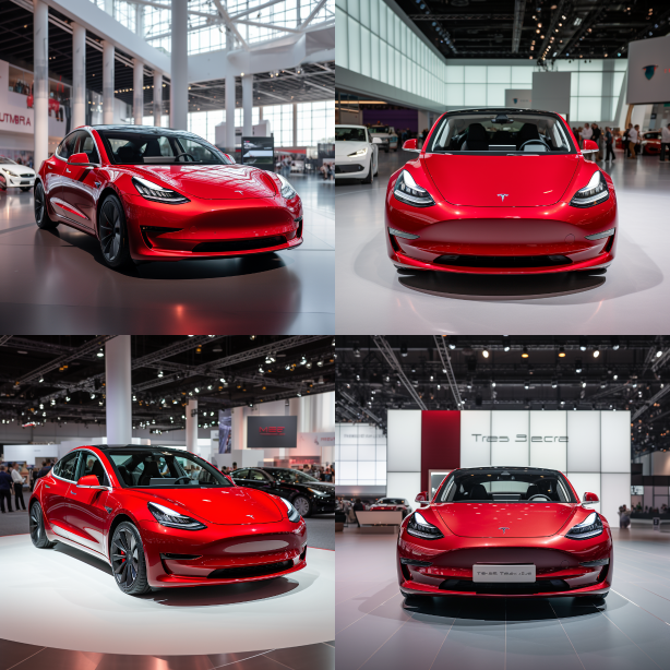 Midjourney Bot 更新时间:2023-09-01 11:13Red redesigned Model 3 parked at the car exhibition booth, showing the front and rear of the car. --ar 1:1 --style raw --v 5.2
