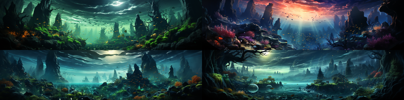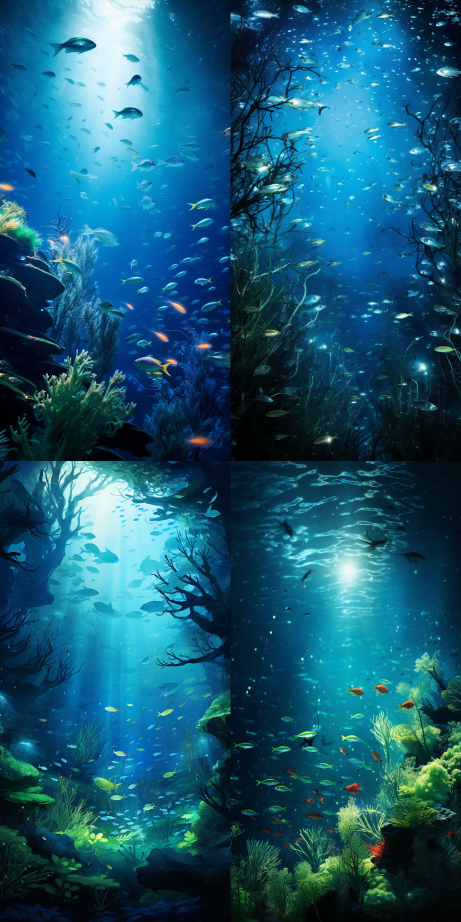 Midjourney Bot 更新时间:2023-09-01 11:14Underwater world, schools of fish, seaweed, glowing marine organisms, UHD --s 1000 --ar 4:1 --style raw --v 5.2