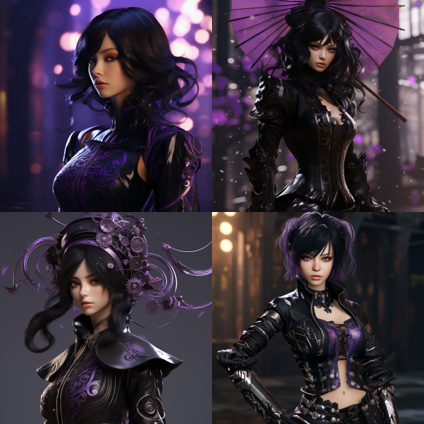 Midjourney Bot 更新时间:2023-09-01 11:11Masculine,Blender:: 11,Purple and black tones,Wuxia,Steampunk,Black hair,Disco output,Blender::11,purple and black tones,Wuxia,Steampunk,black hair,disco outfit --ar 1:1 --style raw --v 5.2