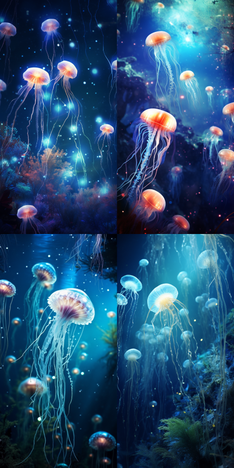 Midjourney Bot 更新时间:2023-09-01 11:06Underwater starry sky, underwater plants, jellyfish. --ar 1:2 --style raw --v 5.2