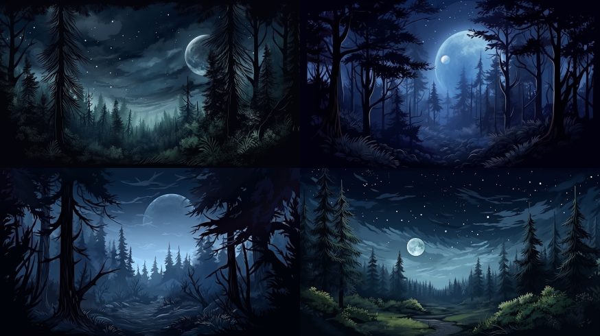 Midjourney Bot 更新时间:2023-09-01 11:06Night Forest Hand-drawn Brush Strokes --no girl --ar 16:9 --style raw --v 5.2