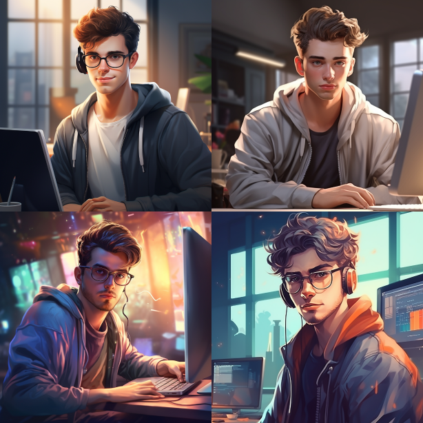 Midjourney Bot 更新时间:2023-09-01 11:12Programmer bust, youthful and handsome, panoramic, soft focus, realistic style --ar 1:1 --style raw --v 5.2