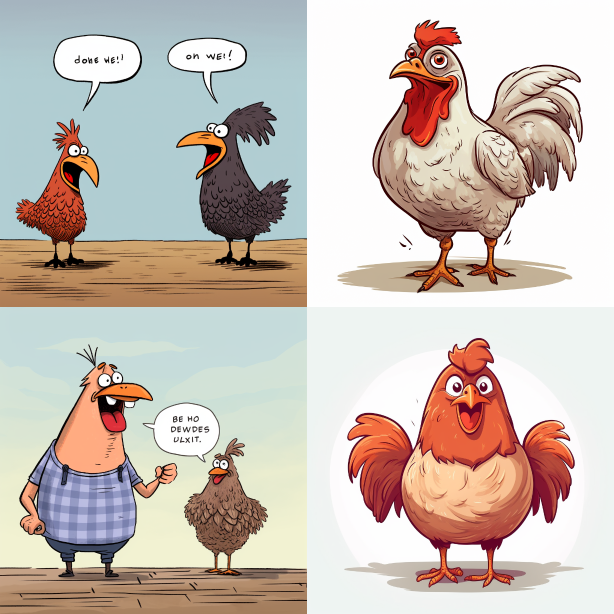 Midjourney Bot 更新时间:2023-09-01 11:12Chicken cartoon --ar 1:1 --style raw --v 5.2