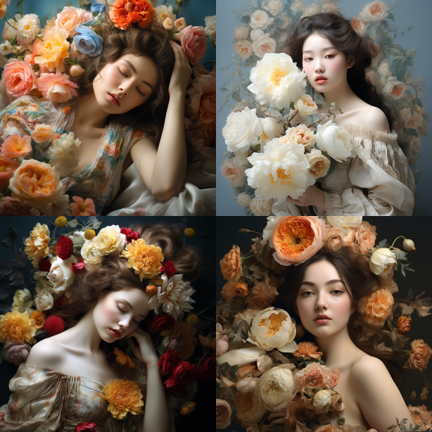 Midjourney Bot 更新时间:2023-09-01 11:06Beauty and Immortality of People and Flowers --ar 1:1 --style raw --v 5.2