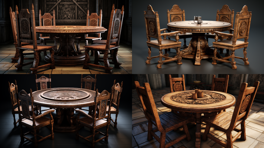 Midjourney Bot 更新时间:2023-09-01 10:44Middle Ages European Round Table with chairs --ar 16:9 --style raw --v 5.2