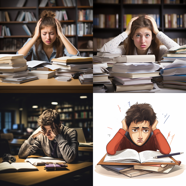 Midjourney Bot 更新时间:2023-09-01 10:52Students are suffering from the pressure of completing their assignments. --ar 1:1 --style raw --v 5.2