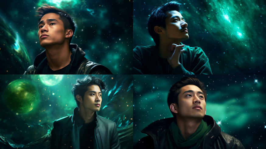 Midjourney Bot 更新时间:2023-09-01 10:46Asian man, science fiction, Cosmic starry sky, emerald --s 109 --c 3 --ar 16:9 --style raw --v 5.2