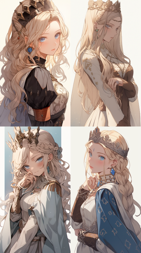 Midjourney Bot 更新时间:2023-09-01 10:48Medieval European princesses with blonde hair and blue eyes --ar 9:16 --style original --niji 5