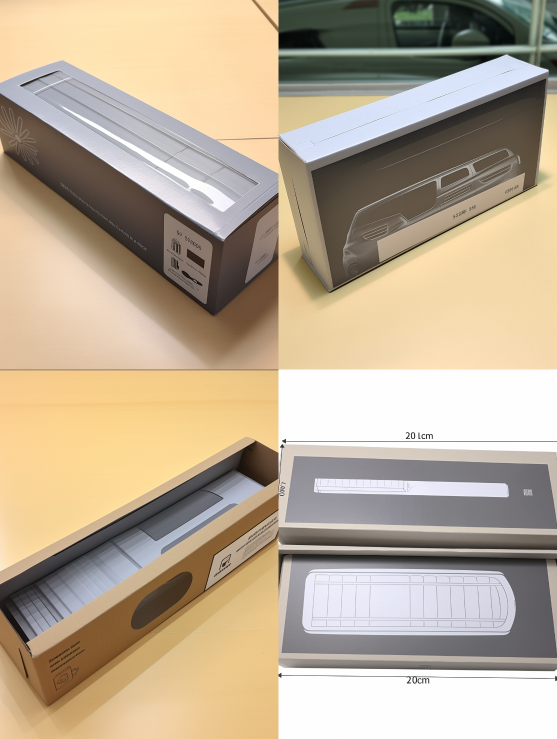 Midjourney Bot 更新时间:2023-09-01 10:51I need a packaging box for a car sunshade. The dimensions of the packaging box are: 27.5 centimeters in length, 6.5 centimeters in width, and 6.5 centimeters in height. The title of the packaging box is: Car sunshade. We need a colored packaging box with a stronger design sense and clear pictures. --ar 3:4 --style raw --v 5.2
